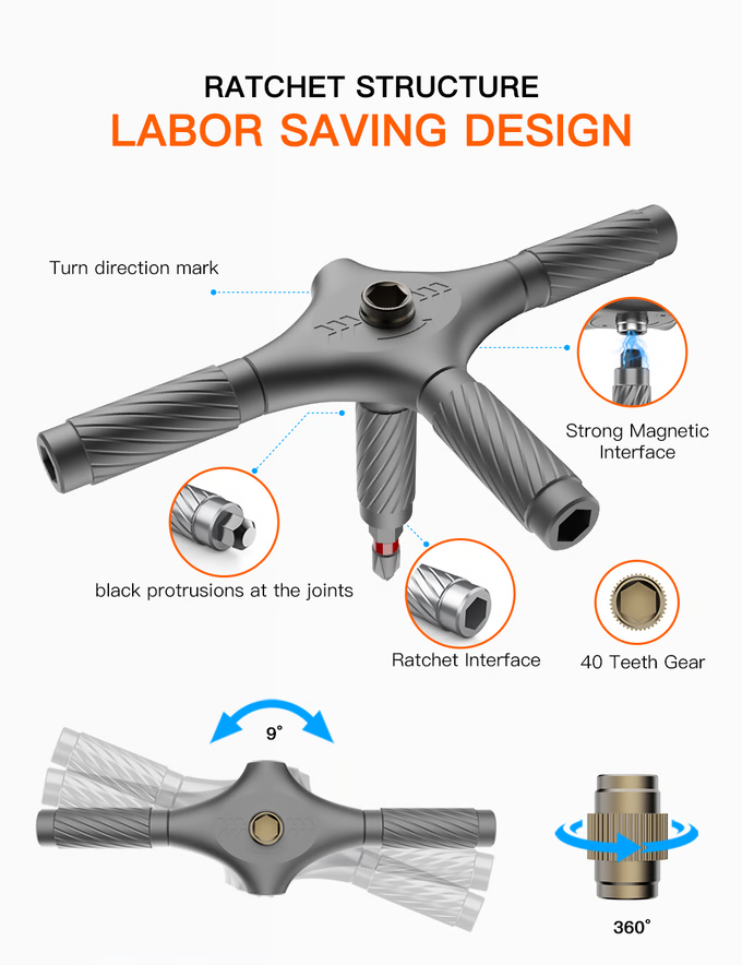 The TurnX Pro 78-in-1 Ratchet Screwdriver Kit is a game-changer for anyone who has ever struggled with hard-to-reach screws or lacked the right tool for the job. This versatile set is designed to address a wide array of maintenance and repair needs, from delicate electronics to automotive work. At its core is a patented 6-hole ratchet handle, engineered to reduce the strain on your wrist and improve efficiency by up to 70%. The 11mm thin head allows access to tight spaces where traditional screwdrivers fail, while the 72 included S2 alloy steel bits cater to hundreds of scenarios. The TurnX Pro’s modular design enables custom configurations, transforming it from a powerful ratchet tool to a precision screwdriver with the addition of a screw cap and extension rod. With strong magnetic connections and a portable storage case, this kit keeps your workspace organized and ensures you’re always prepared for any task, making it an essential tool for both DIY enthusiasts and professionals alike.