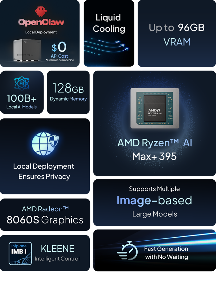 The Hilbert Agentic Computer redefines the landscape of AI-driven computing, offering a complete solution for developers and creators involved in coding and agent workflow design. Utilizing a local 235B (MoE) LLM or 8x32B LLMs coupled with OpenClaw, it eliminates the need for costly API calls, enabling users to run powerful AI models directly on their machine. The system boasts up to 96GB of VRAM, 128GB of dynamic memory, and leverages an AMD Ryzen™ AI Max+ 395 processor and AMD Radeon™ 8060S Graphics. Privacy is paramount with local deployment, supporting multiple image-based large models. The system is enhanced by Infplane’s IMBI KLEENE intelligent control, which dynamically optimizes CPU, GPU, and memory allocation for maximum performance. This translates to fast generation with no waiting, whether for AI tasks, CAD/EDA, or enjoying smooth AAA gaming. The Hilbert Agentic Computer is compatible with Windows, Ubuntu, and other OS, ensuring a seamless experience across a wide range of applications, including Autodesk, ANSYS Inc, C4D, and Blender. Its integrated AI memory adapts and learns, providing an extension to your creative process.